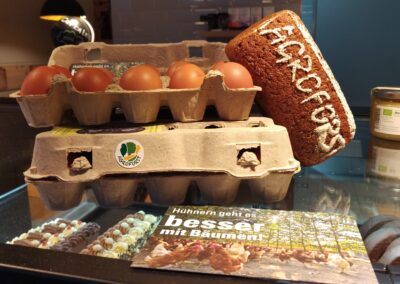 Am 30. Januar 2026 gab es in der Bäcker Wahn-Filiale Alfred in Vetschau / Spreewald die Möglichkeit, beide Produkte aus der Agroforst-Landwirtschaft kennenzulernen und sich über deren Herstellungsprozess genauer zu informieren.