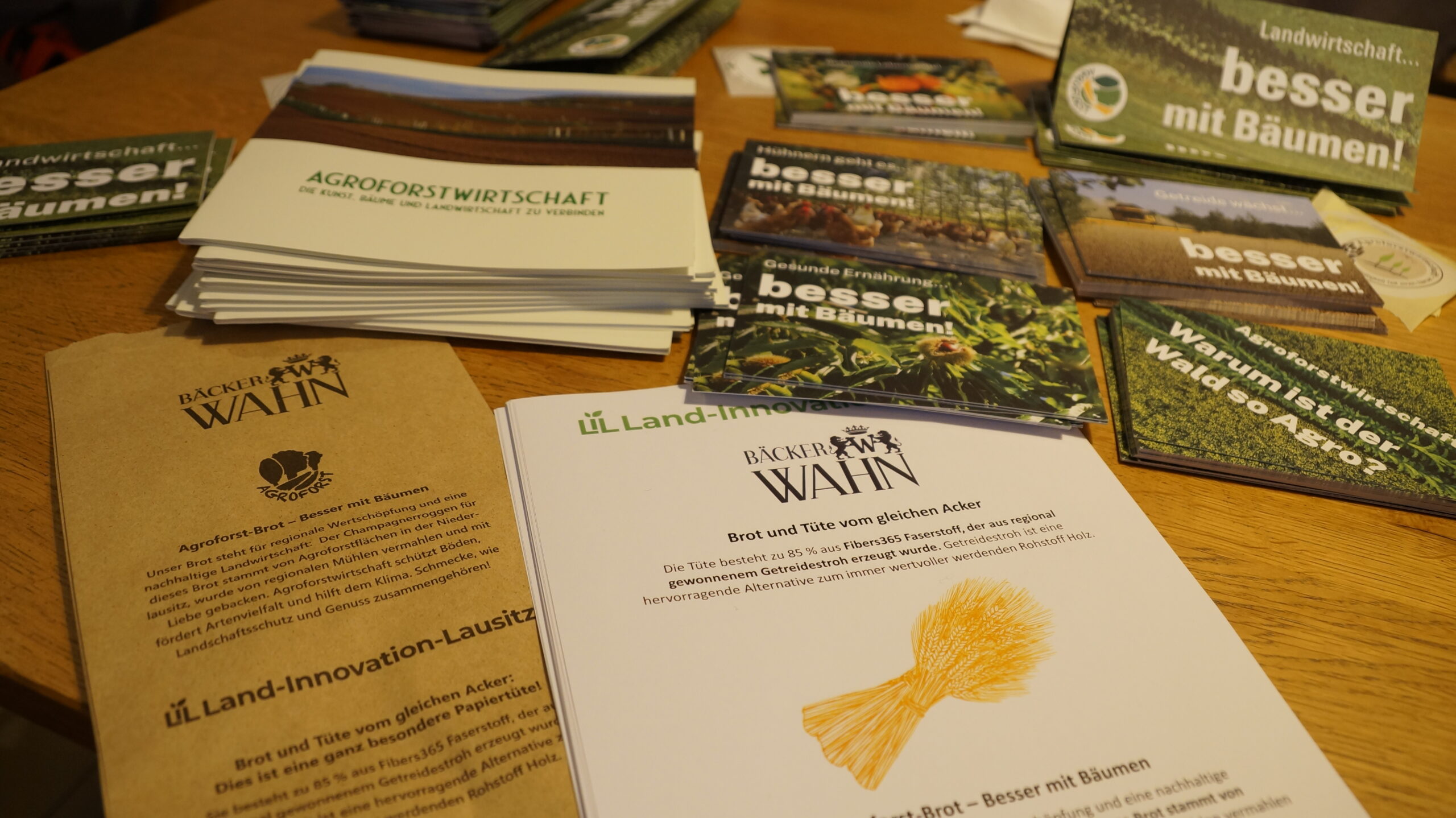Im Rahmen der Vermarktungsaktion „…besser mit Bäumen!“ informiert das Projektteam von AgroWert-Regio des WIR!-Bündnisses Land-Innovation-Lausitz über Agroforstwirtschaft – eine Kombination aus Landwirtschaft und Gehölzen – und stellt die dort produzierten Produkte vor. „Das Projekt AgroWert-Regio war ein Verbundprojekt des Deutschen Fachverband für Agroforstwirtschaft e.V. (DeFAF), der Hochschule für Nachhaltige Entwicklung Eberswalde (HNEE), des Spreewaldvereines e.V. sowie der Praxispartner Bäckerei Wahn und Landwirtschaftsbetrieb Domin. Das Projekt fand bis Ende Dezember 2025 im Rahmen des Forschungsbündnisses Land-Innovation-Lausitz (LIL) statt. Es beschäftigte sich mit den ökonomischen Perspektiven von Agroforstsystemen, konkret der Inwertsetzung von Agroforst-Produkten“ erläutert Ruben Weber, ehemaliger Leiter des Projektes beim DeFAF. Agroforstsysteme schützen nicht nur den Boden vor Winderosion und Austrocknung, sondern schaffen auch Lebensräume für mehr Insekten und Vögel und binden durch die Gehölzstreifen zudem Kohlenstoffdioxid (CO₂) als aktiven Beitrag zum Klimaschutz. .