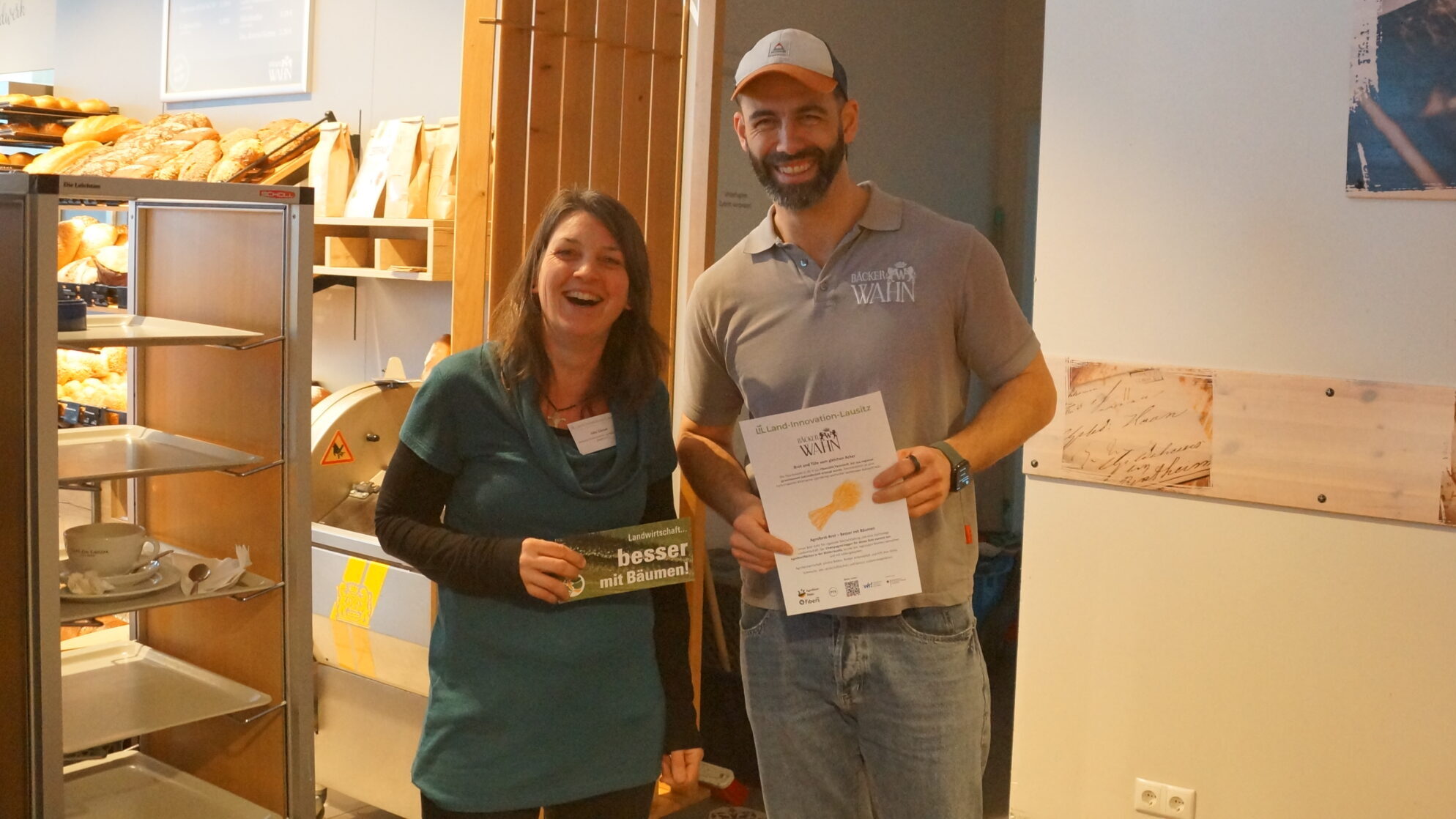 Philipp Fumfahr, Geschäftsführer der Bäcker Wahn Filialen, entwickelte das Agroforstbrot aus dem Agroforstmehl und stellt das Rezept auf Anfrage bereit. „Gereinigt und gemahlen wird das Getreide von einem Traditionsunternehmen der Region – der Schälmühle der Gebrüder Kümmel mit den Standorten in Vetschau und Burg/Spreewald – bevor es bei uns verarbeitet wird“ ergänzt Fumfahr.