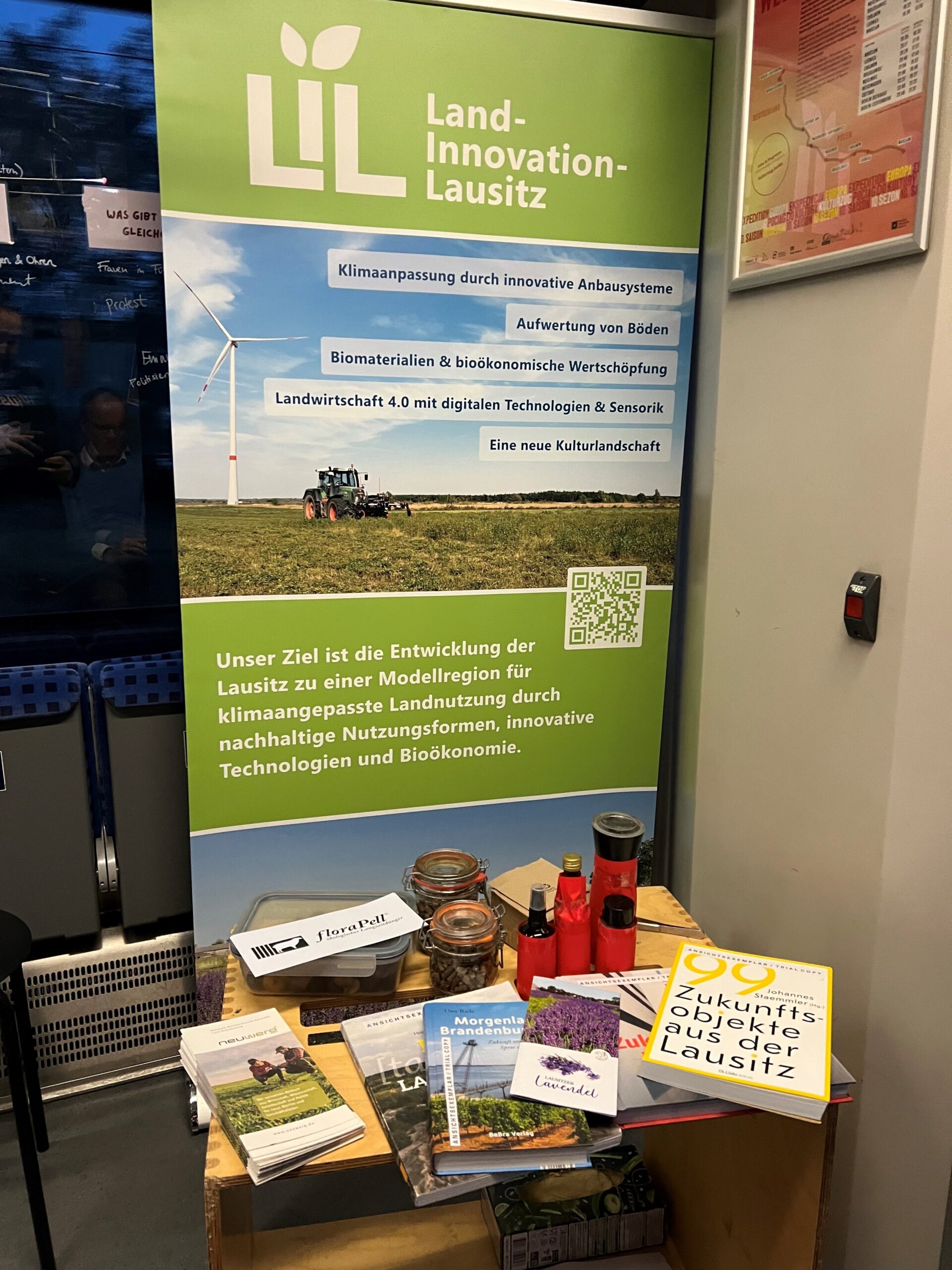 Unsere Partner INIK – Institut für Neue Industriekultur GmbH in Zusammenarbeit mit dem Institute for Heritage Management (IHM) aus dem Projekt LIL-PARTIKUL (PARTIzipation und BergbauKULtur) haben gemeinsam das Programm bespielt. Sie stellten ihr Projektportfolio im Rahmen eines Science Slam vor: unter anderem wurde auch unser WIR!-Bündnis „Land-Innovation-Lausitz“ vorgestellt, das in Form eines Roll-Ups mit an Bord vertreten war, sowie das LIL-Projekt PARTIKUL. Außerdem war das Plattform-Projekt „Neuwerg – Netzwerk Nachwachsende Rohstoffe Land Brandenburg“ unseres Partners FIB (Forschungsinstituts für Bergbausfolgelandschaften) aus Finsterwalde mit Informationsmaterial vertreten.