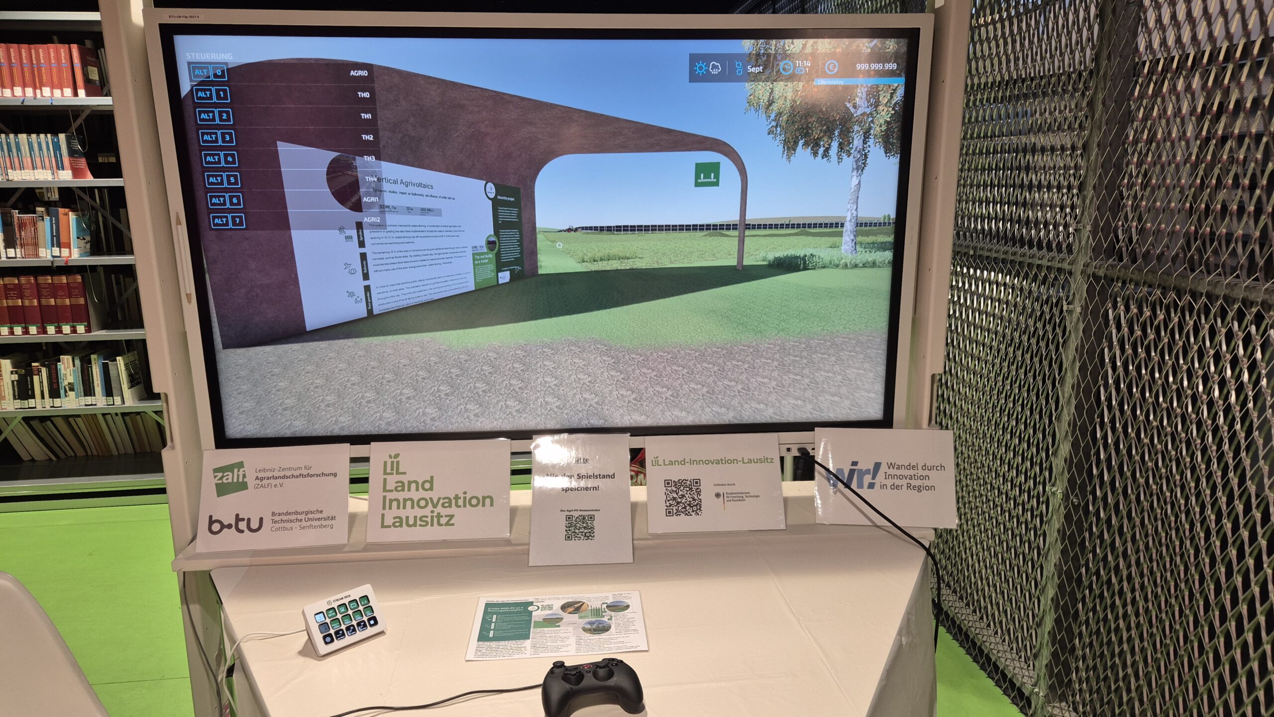 Da das Thema Agri-PV auch zukünftig ein Dauerbrenner sein wird – denn mit ihr kann eine Fläche gleichzeitig der landwirtschaftlichen Nahrungs- und Futtermittelproduktion als auch der Solarstromerzeugung dienen – und in LIL das Projekt iEnergy Solutions an Integrativen Energielösungen in der Landwirtschaft der Lausitz forscht, richteten wir unseren diesjährigen Fokus mit zwei weiteren Exponaten auf dieses Thema: