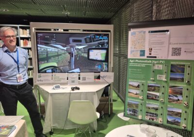 Da das Thema Agri-PV auch zukünftig ein Dauerbrenner sein wird – denn mit ihr kann eine Fläche gleichzeitig der landwirtschaftlichen Nahrungs- und Futtermittelproduktion als auch der Solarstromerzeugung dienen – und in LIL das Projekt iEnergy Solutions an Integrativen Energielösungen in der Landwirtschaft der Lausitz forscht, richteten wir unseren diesjährigen Fokus mit zwei weiteren Exponaten auf dieses Thema: