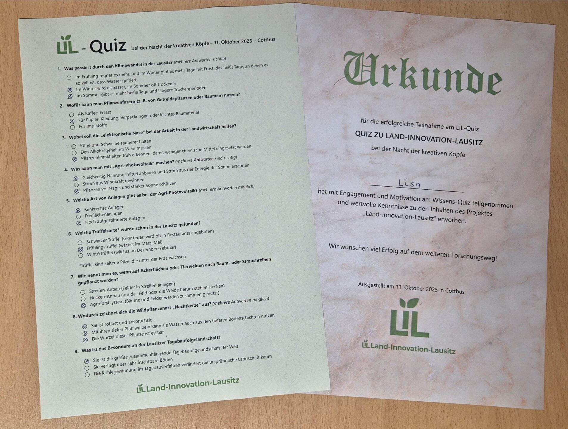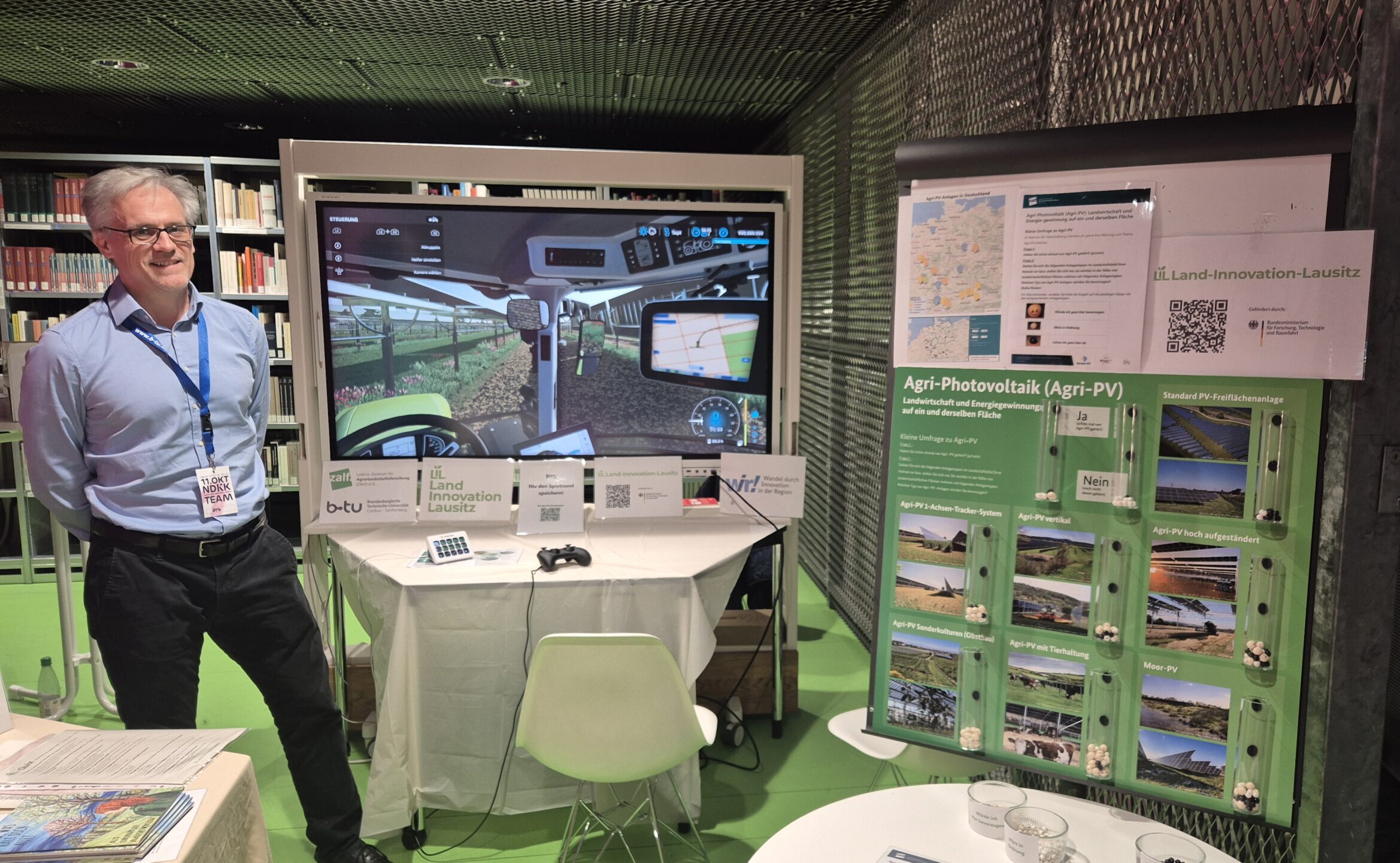 Auch das LIL-Quiz, für das eine kleine Quiz-Ecke eingerichtet wurde, eignete sich ausgezeichnet, um die zentralen Themen des F&E-Vorhabens wie Boden-, Pflanzen- und Material-Innovationen vorzustellen sowie die Kulturlandschafts-Integration, den Querschnitt Digitalisierung und Sensorik und auch (Agri-)Photovoltaik.